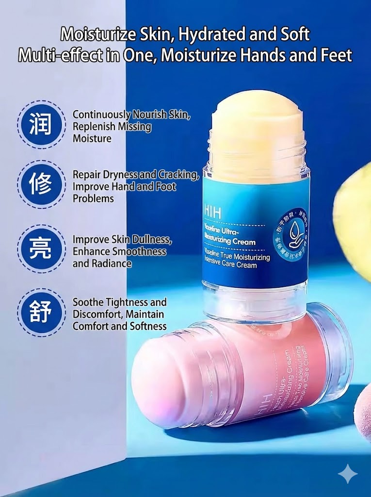 Moisturizing Cream: Helps prevent cracked heels and dry hands while forming a protective barrier.
